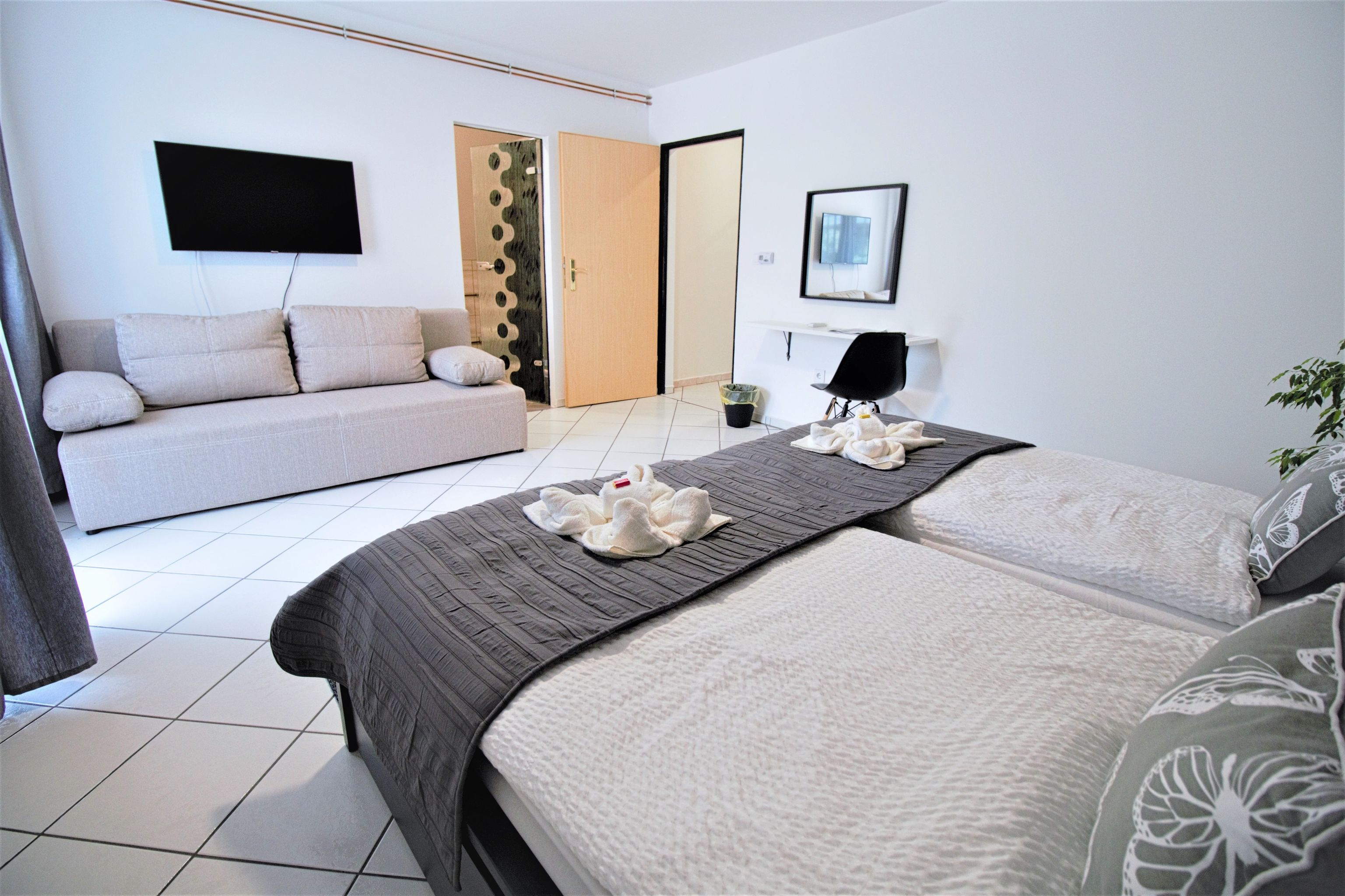 A szobákat a panzió kategóriáján lényegesen túlmutató technikai színvonal jellemzi! Az épület két szintjén 9 szobával, 26 férőhellyel rendelkezünk! A lakosztályok, és a standard szobák mindegyike külön bejáratú, klimatizált, saját fürdőszobával, televízióval, szobaszéffel, ingyenes internet elérhetőséggel rendelkezik. Minden lakóegységhez saját terasza tarozik. A Panzió saját kertjében grillezési, bográcsozási lehetőség várja vendégeinket! A földszinten kialakításra került játékszigetünk, felnőttek és gyerekek szórakoztatására, mely tartalmaz többek között csocsó asztalt, billiárd asztalt, és a gyerekeknek egy játszósarkot. A földszinten található egy 26 fős reggeliző helyiség, Reggelente 8-10 óráig bőséges reggelivel várjuk kedves Vendégeinket, melyet érkezéskor a recepción lehet igényelni. Kérésre készített és állandó választékkal, kávé, tea és üdítő italokkal!